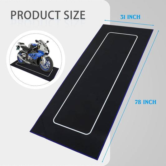Motorcycle Mat, 78" L x 31" W Motorcycle Garage Mat Waterproof, Non-Slip, Heavy-Duty Surface for Display Decoration, ATVs & Workshop Use – Easy to Clean & Reusable