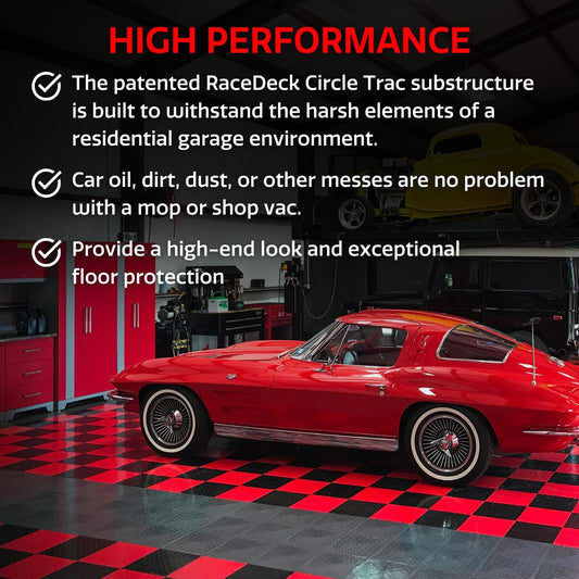 Big Floors RaceDeck CircleTrac, Interlocking Non-Slip Garage Flooring Tile, Durable, Modular, Heavy-Duty Copolymer, Easy Install (Red, 24 Pack of 12 x 12" Tiles)