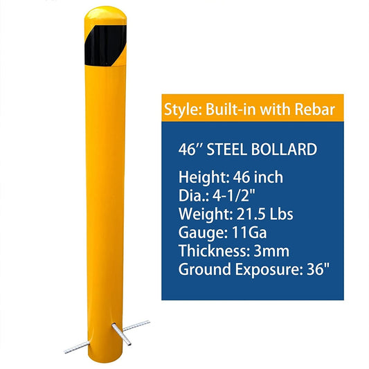 46" Pour in Place Steel Bollard Post, 4-1/2" OD Safety Bollard Yellow Powder Coat, Metal Bollard Parking, Driveway Barrier