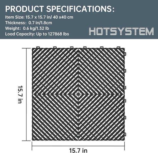 Multifunctional Interlocking Modular Garage Floor Tiles, Non-Slip Interlocking Polypropylene Floor Tiles, 15.7'' x 15.7'' x 0.7''(Thickness) Flooring Tile(40 Pack), Black