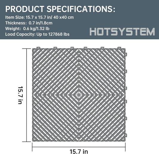 Multifunctional Interlocking Modular Garage Floor Tiles, Non-Slip Interlocking Plastic Floor Tiles, 15.7'' x 15.7'' x 0.7''(Thickness) Flooring Tile(40 Pack), Grey