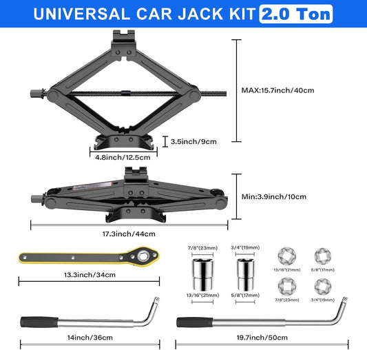 Scissor Jack - 2 Ton (4409 lbs) Car Emergency Kit with Lug Wrench, Tire Changing Kit for Sedan, Coupe, SUV, MPV
