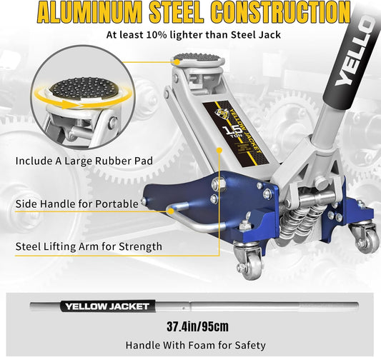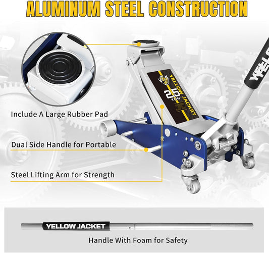 YELLOW JACKET Floor Jack 2.5 Ton Hydraulic Low Profile Aluminum and Steel Racing Car Jack with Fast Lifting Dual Pump, 5500 lbs Capacity