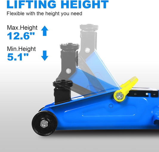 Floor Jack 1.5 Ton (3,000 LBs) Hydraulic Car Jack, Lifting Range from 5.1 Inch to 12.6 Inch, Fits Sedans Automotive Blue