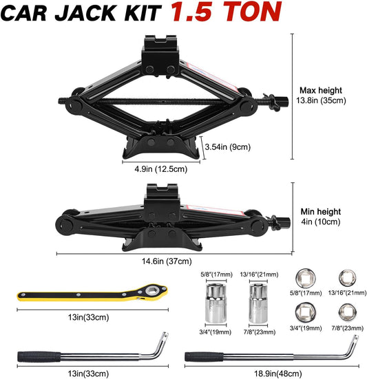 Scissor Car Jack 1.5Ton(3306lbs) Tire Changing Kit with Lug Wrench - Emergency Kit for Car, SUV, MPV