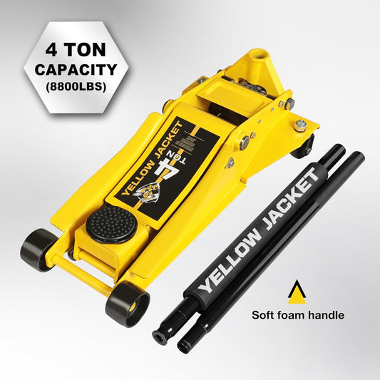 YELLOW JACKET Low Profile Floor Jack with Dual Pumps Quickly Lift Hydraulic Car Jack with Pad, 4 Ton (8,800 lb) Capacity