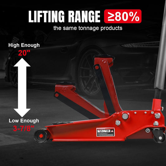 4 Ton Floor Jack Hydraulic Low Profile Floor Jack with Dual Piston Quick Lift Pump, 4 Ton (8,800 lbs) Capacity, Red