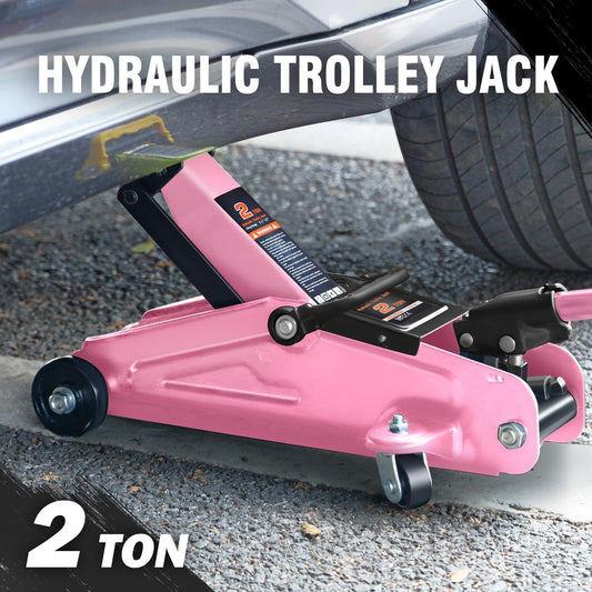 DNA MOTORING Low Profile Hydraulic Trolley Service/Floor Jack, 2 Ton (4000 lbs) Capacity, Lifting Range 5.1"-13", Pink, TOOLS-00474-PK