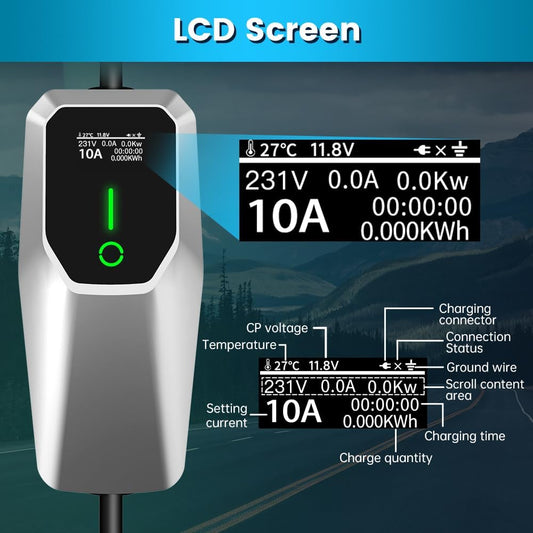 Portable Level 1 and Level 2 EV Charger 240V 32A (7.68kw) with 26ft Charging Cable NEMA 14-50 5-15 for SAE-J1772 Electric Vehicles Charging Station