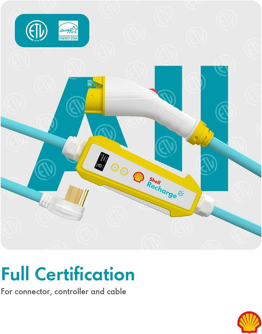 Shell Level 2 EV Charger, 40A ETL Certified Energy Star EV Charger, Home/Outdoor Portable Charging Station Adjustable Current Schedule Time Total Length 24ft Cable Adapter for J1772 Electric Cars