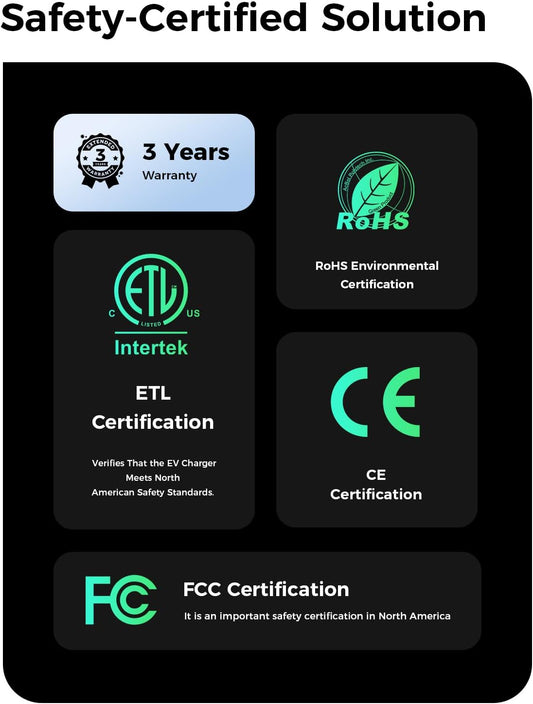 Level 2 Charger with J1772, 40Amps 240V, NEMA 14-50 Plug, ETL/FCC/CE Certified EV Chargers for Home Level 2, 8-40Amps Adjustable Current, Schedule Timer, Compatible with All SAE J1772 EVs