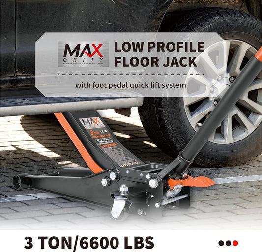 3-Ton (6600lbs) Low-Profile Dual Pistons Heavy-Duty Steel Racing Floor Jack with Quick Lift Hydraulic Pump, Foot Pedal and Magentic Pad for Car Maintenance (Orange, 3 Ton Low Profile)