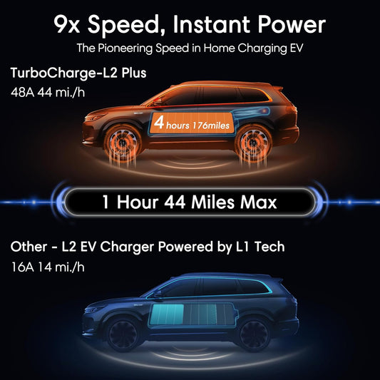 Level 2 EV Charger, 240V 48Amps, Electric Vehicle Charging Station with NEMA 14-60 Plug, ETL/FCC/CE Certified, WiFi Enabled, Adjust Current Schedule Charging RFID for All SAE J1772 EVs