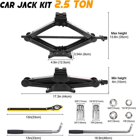 Car Jack Kit Scissor Jack for Car 2.5 Ton (5511 lbs) Tire Jack Tool Kit Universal Car Emergency Kit with Lug Wrench Tire Changing Kit for Car SUV