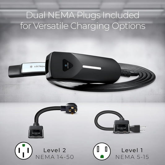 Lectron Level 1/2 (12A & 40A) Tesla NACS EV Charger - Dual-Level Electric Vehicle Charging Station with NEMA 14-50/5-15 Plug - Portable Electric Car Charger for All NACS Electric Vehicles