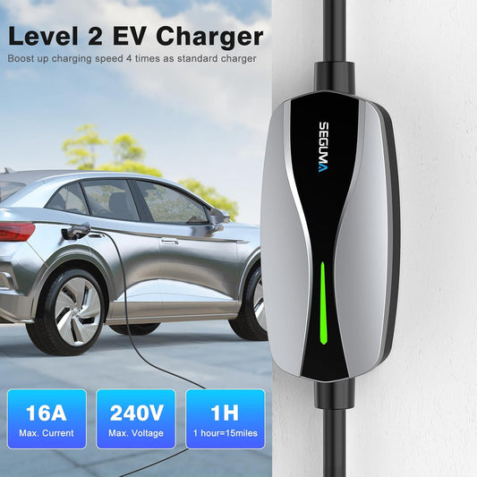 Level 2 EV Charger, 40Amp Electric Car Chargers 25FT Cable with NEMA 14-50 Plug, Adjustable Current, Timing Delay Electric Vehicle Chargers for J1772 BEVs/PHEVs 240V 9.6kW