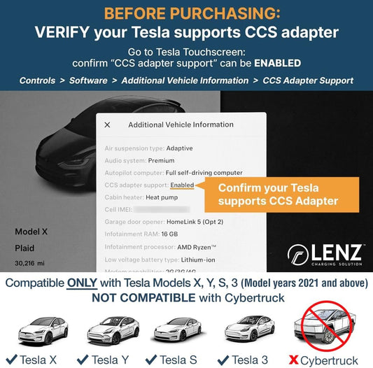 LENZ CCS1 to Tesla EV Charging Adapter – for 2021+ Tesla Models ONLY (Not for Cybertruck) – Connect to Public DC Level 3 Fast Chargers Up to 250 kW