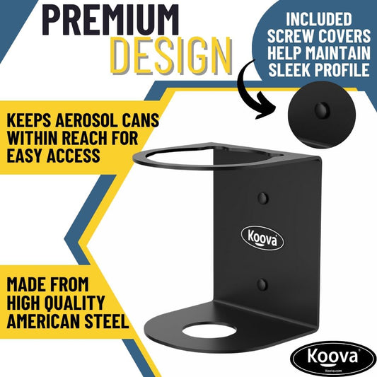 Koova Aerosol Spray Can Holder | Easy Install Wall Mount | Heavy-Duty Powder Coated Steel Storage Rack for Garage & Home | Craft Workspace Paint Bottle Organizer | Hardware Included | USA Made