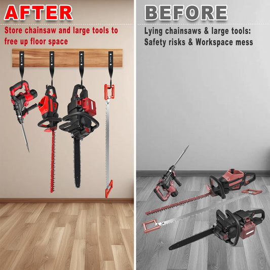 Chainsaw Hanger,Chainsaw Holder for Garage Wall Mount, Garage Storage Hooks for Chainsaw, Backpack Blower, Weed Eater & Tools,Rustproof Chainsaw Hook Organizes Tools, Saves Space(4 Pcs)