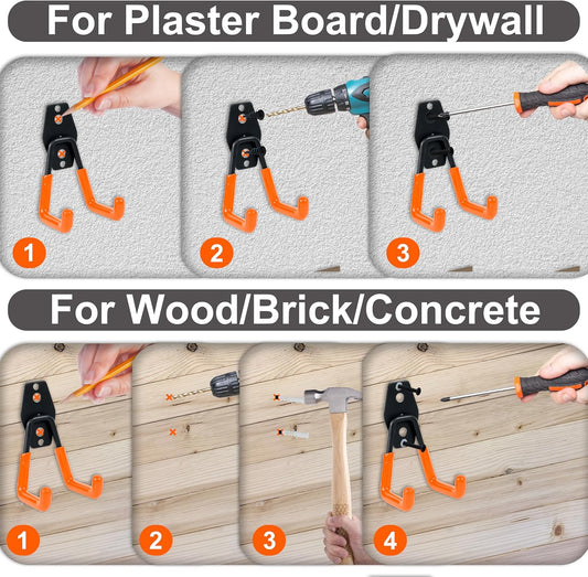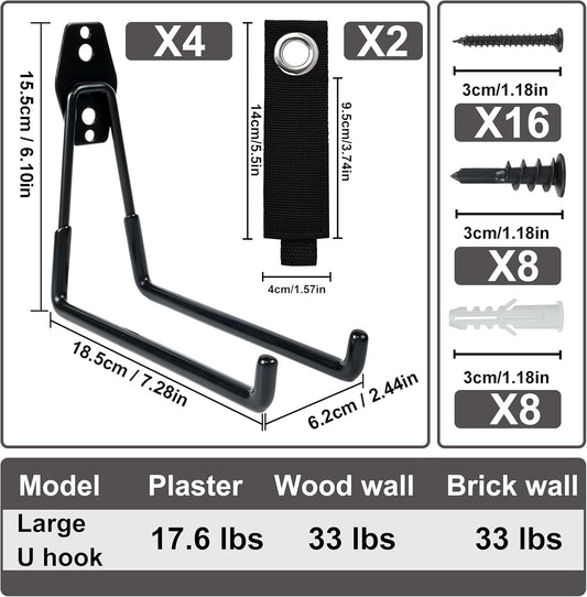 QUELIEN 4 Pack Garage Wall Hooks, 2 Large 7.5 in & 2 Small 2.5 in Heavy-Duty Cord Organizers for Garage Storage, Space-Saving Design for Home, Garage, and Workshop Use