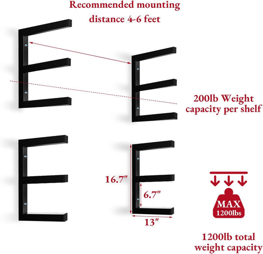 Heavy Duty Lumber Storage Rack Wall Mount, Metal Wood Rack Organizer with 6-Level Each Shelf Holds Up 200 Lbs, Indoor & Outdoor Use - 4pack