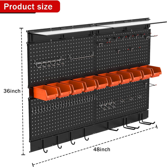 Ultrawall Black Pegboard Wall Organizer, 48X 36 inch for Garage Storage with Hooks, Storage Bins, Tool Panel Organizer, 72pcs