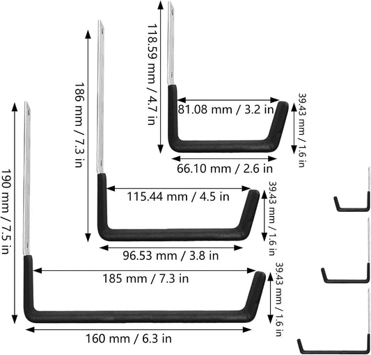 Ladder Hooks for Garage Organization, Wall Mount Storage Rack, Heavy Duty Hangers for Wheelbarrow, Black with Screws