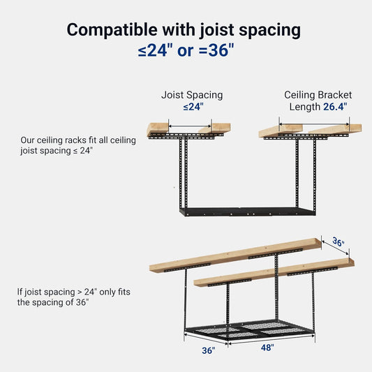 FLEXIMOUNTS 2x3FT Garage Storage Rack Overhead, Adjustable Ceiling Storage Racks, Metal Garage Organization System with 155LBS Weight Capacity(Black)