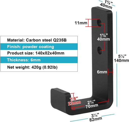 4 Pack 5-1/2" Heavy Duty Black Steel J Hook, Wall Mount Utility Hook, Load 260 lb, 1/4" Thick