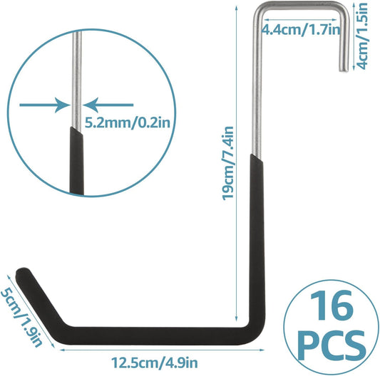 Acrux7 16 Pack Rafter Hooks Heavy Duty Rafter Hanger Vinyl Coated Large S Hooks for Hanging Ladder Bike Hangers Garage Storage Organizer (Black)
