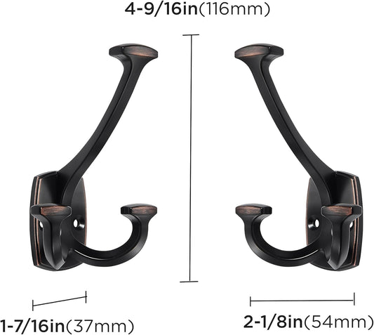 Large Wall Double-Sided Hook 2 Pack Oil Rubbed Bronze Hook Decorative Heavy Duty Solid Large Coat Hooks for Towel Hanging Coats Robe Towel Bags Door Back 2 Prong Hooks