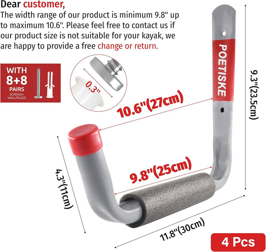 unp POETISKE Utility Hooks Ladder Hooks with 9.8'' Jumbo Arm Garage Storage Organizer Hang Folding Chair Bike Ski Tool Heavy Duty 4PC