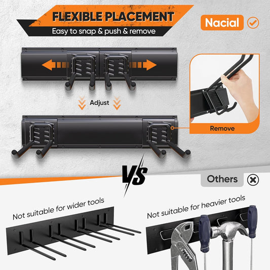 Garden Tool Organizer Wall Mount, 48 inches Tool Storage Rack with Adjustable Hooks, 600lbs Adjustable Heavy Duty Metal Hooks, Yard Shed Rack Holder System Hanging Rake Broom Mop, Father's day gifts