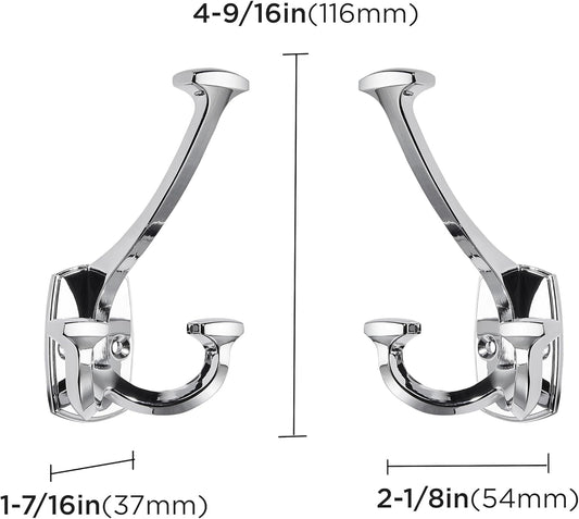 Large Wall Double-Sided Hook 2 Pack Polished Chrome Hook Decorative Heavy Duty Solid Large Coat Hooks for Towel Hanging Coats Robe Towel Bags Door Back 2 Prong Hooks