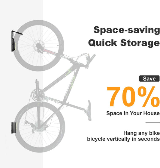 Todeco Bike Wall Mount Rack with Rear Tire Tray, Vertical Bike Hooks Storage Indoor Saving Space for Garage, Shed, Great for Hanging Road, Mountain or Hybrid Bikes,2-Pack