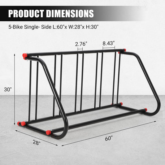 Commercial Grid Bike Rack for 5 Bikes - Heavy Duty Metal Bike Stand Floor, Outdoor Bicycle Parking Rack for Garage, Retail, School, Backyard, Bike Shop (Single Side)