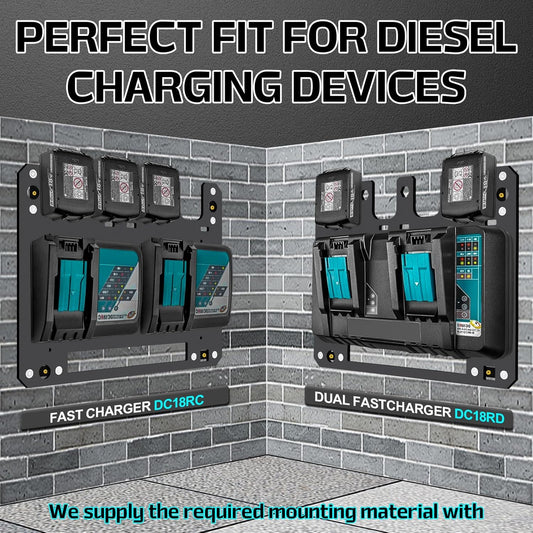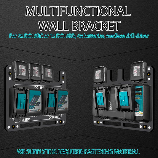 Charger Mount for Makita DC18RC, DC18RD Charger, Wall Mount for Makita 4X 14.4V/18V Batteries and 2 Drilling Screwdrivers, Heavy-Duty Garage Workshop Organization
