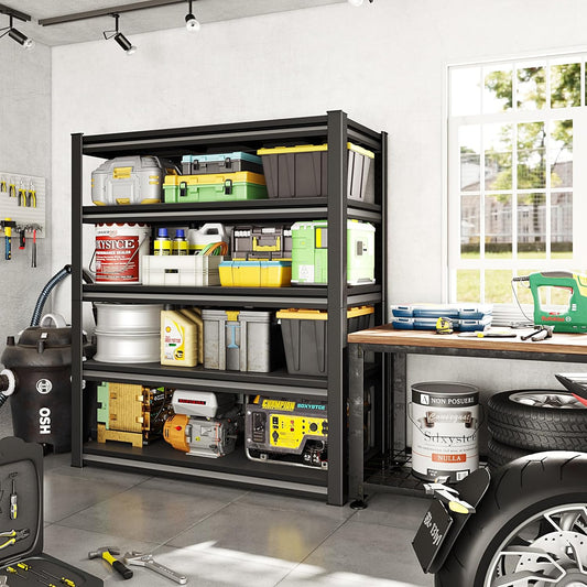 48" W Garage Shelving Heavy Duty,2800LBS Loads Adjustable Garage Storage Shelves,5-Tier Metal Storage Racks and Shelving Units, Utility Rack Shelves,48”W x 18”D x 78”H,Black