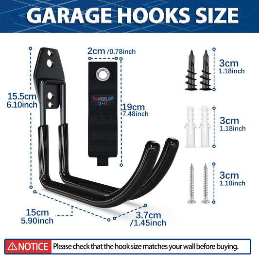 3-H Large Garden Hose Holder Wall Mount 4 Pack,Solid Steel Hose Hanger,Water Hose Holders for Outside,Perfect for Hanging Outdoor Air Hose,Ropes,Pipes,Garden Tools,Ladders,Bikes,Bulk Items(Black)