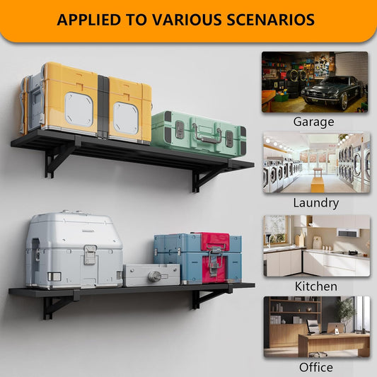 4-Pack 1.5x4ft Garage Shelving Wall Mounted, 1200lbs Load Capacity, Heavy Duty Garage Storage Shelves, Storage Rack, Black
