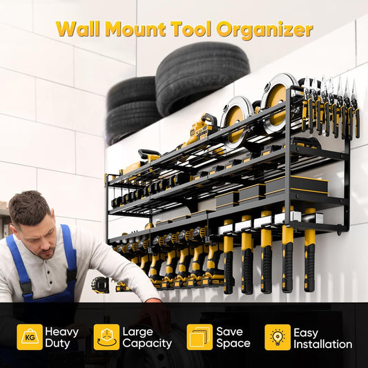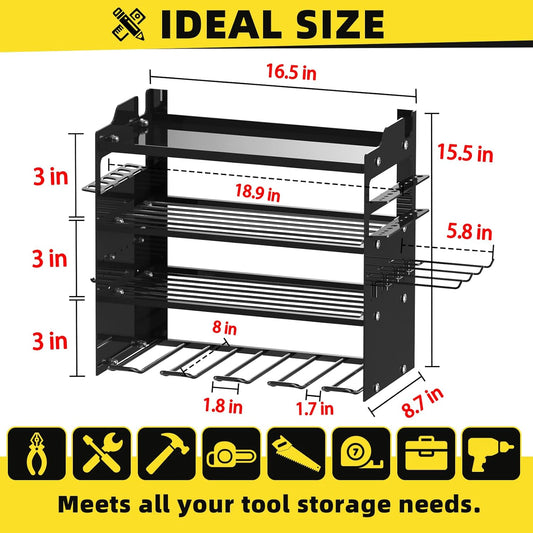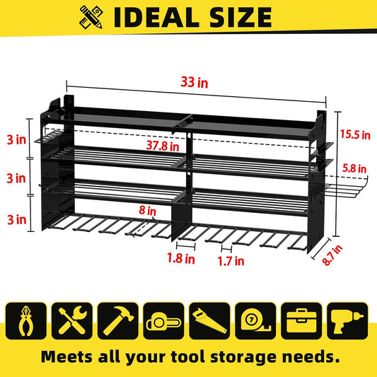 Power Tool Organizer Wall Mount, Heavy Duty Drill Holder, Garage Tool Organizer and Storage, Suitable Tool Rack for Tool Room, Workshop, Garage, Utility Storage Rack for Cordless Drill
