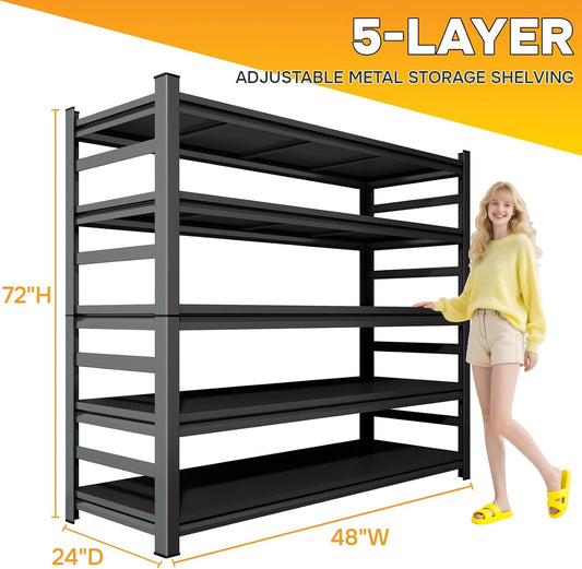 Metal Garage Shelving,48" Wx72 H Heavy Duty Storage Shelves-Easy to Assemble,5 Tier Adjustable 3600 lbs Capacity Metal Storage Utility Rack Shelf Unit for Warehouse Pantry Office Kitchen, Black