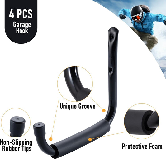 HOME MASTER HARDWARE Heavy Duty 9" Jumbo Arm Garage Wall Hooks 4 Pack – 50Lbs Ladder Hangers, Wall Mount Utility Storage for Bikes, Folding Chairs, Kayaks & Bulk Items