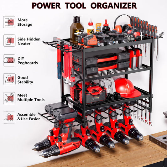 Power Tool Organizer - Garage Tool Holder and Storage (Black, B)