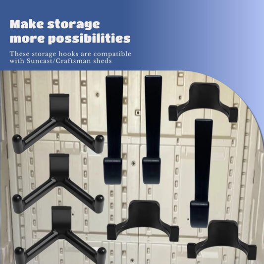 9 Pcs ABS Storage Shed Tool Hooks, Heavy Duty Shed Accessories & Hooks - Compatible with Suncast & Craftsman Sheds, Black J/U/V Shape for Organizing Ladders, Hoses & Garden Tools in Outdoor Sheds