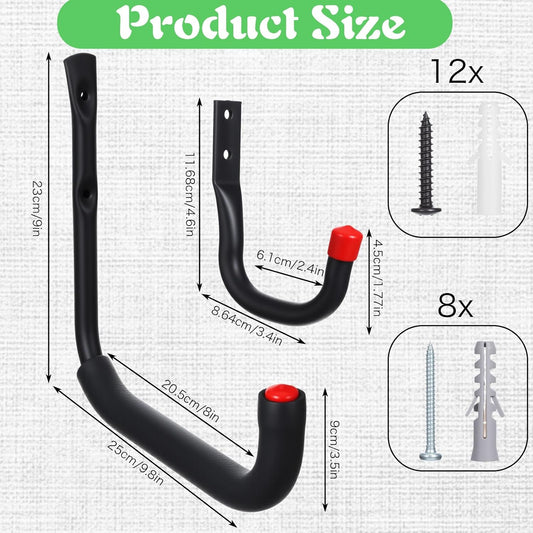 Heavy-Duty Garage Hooks -4 Pack Type large J - Anti-Slip Coated Wall-Mounted Hooks Wall Mount Storage Organizer for Hanging Power and Garden Tools, Ladders, Hose, Bikes, Ropes, Bulk Items, and More