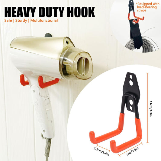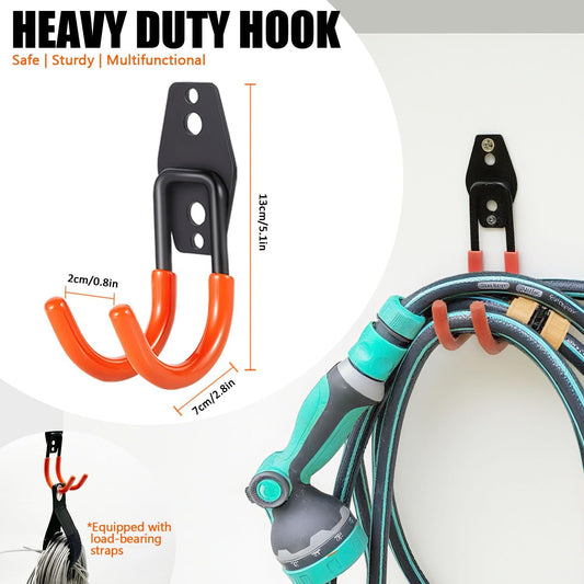 Heavy-Duty Garage Hooks -2 Pack Type U- Anti-Slip Coated Wall-Mounted Hooks Wall Mount Storage Organizer for Hanging Power and Garden Tools, Ladders, Hose, Bikes, Ropes, Bulk Items, and More