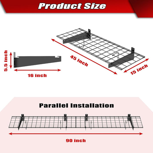 WALMANN 2 Pack Garage Wall Mount Shelves, 45x15 inch Wall Mounted Storage Shelves for Garage Heavy Duty Wall Shelving, Holds Up to 220 Lbs(Black)