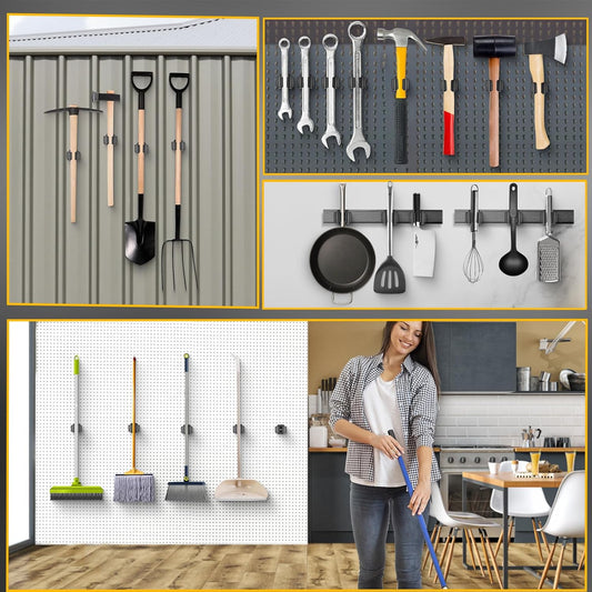 Upgraded Magnetic Broom and Mop Holder Wall Mount, Space-Saving Heavy Duty No Drill Over the Door Broom Gripper RV Camper Wall Organizer,Black,4 Pcs