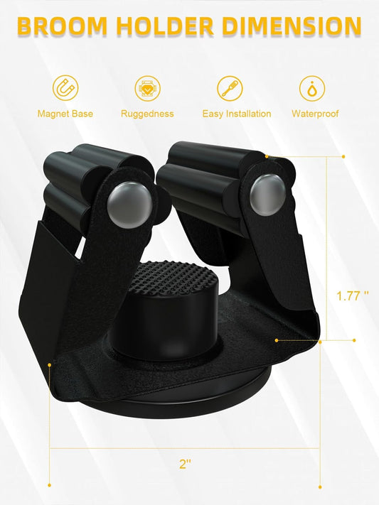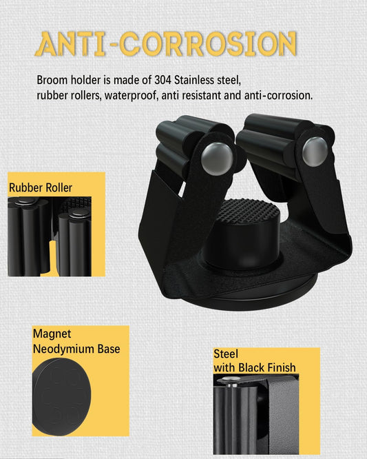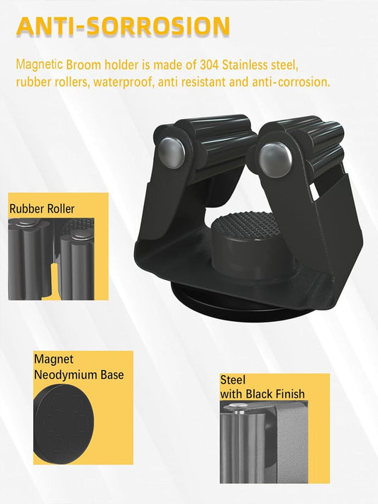 Magnetic Mop Holder, No Drilling Black Steel Magnetic Tool Mount for Home, Kitchen, Laundry, Garage, Workshop - 2 Pack/Black